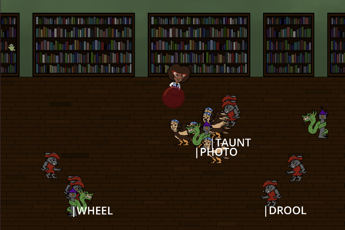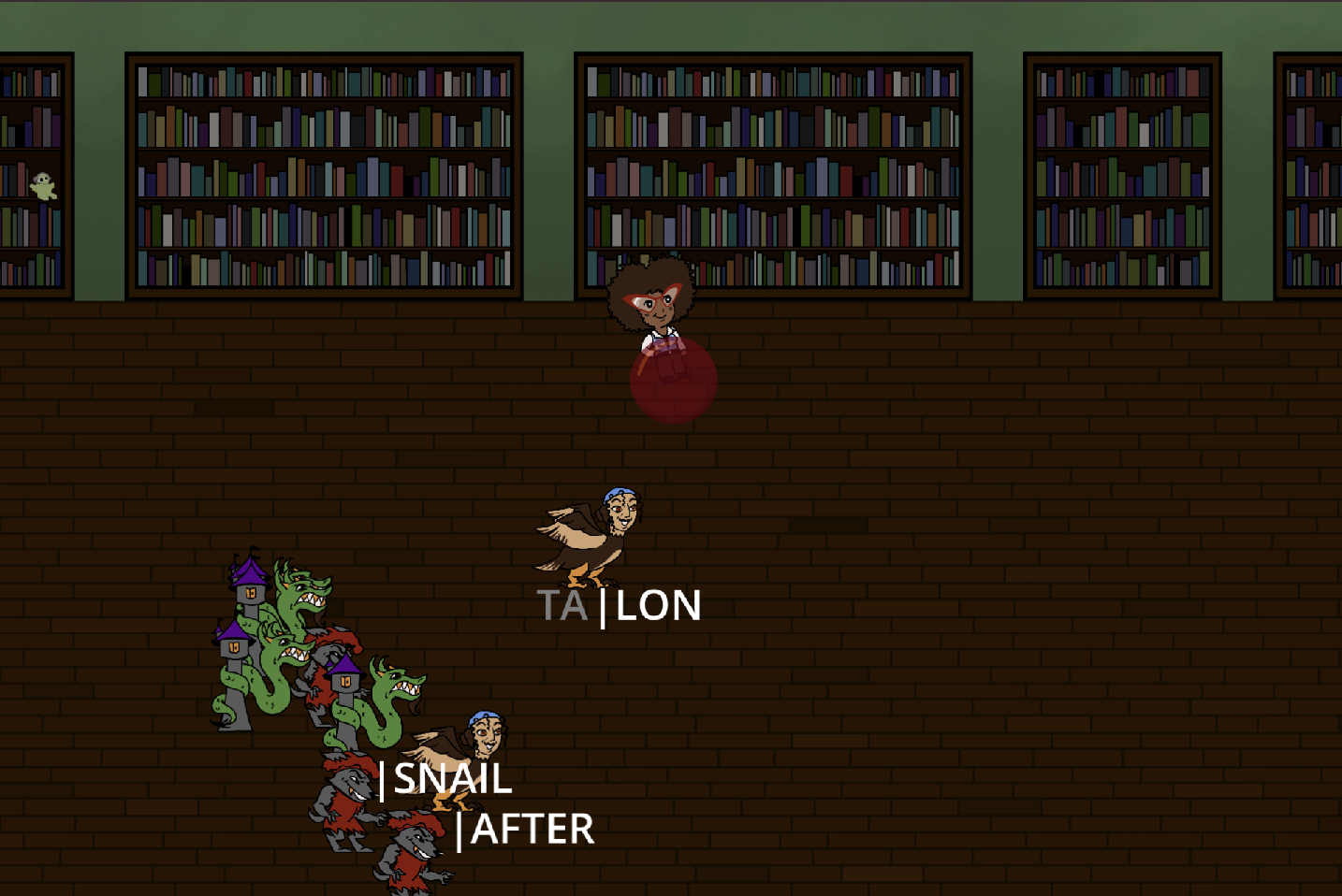 Creatures from folklore have escaped the bindings of their books! It's up to you, a fearless librarian to type key words and return them to the bounds of their pages.
